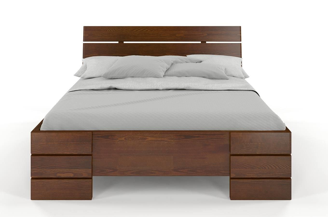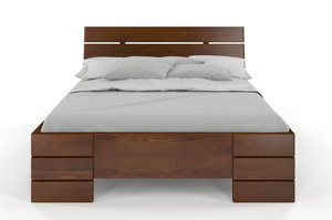 • Łóżko drewniane sosnowe Visby SANDEMO High BC Long (Skrzynia na pościel) / 200x220 cm, kolor palisander