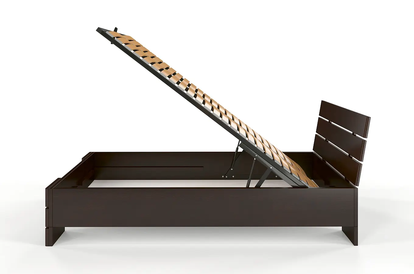 Łóżko drewniane sosnowe Visby SANDEMO High BC Long (Skrzynia na pościel) / 200x220 cm, kolor palisander