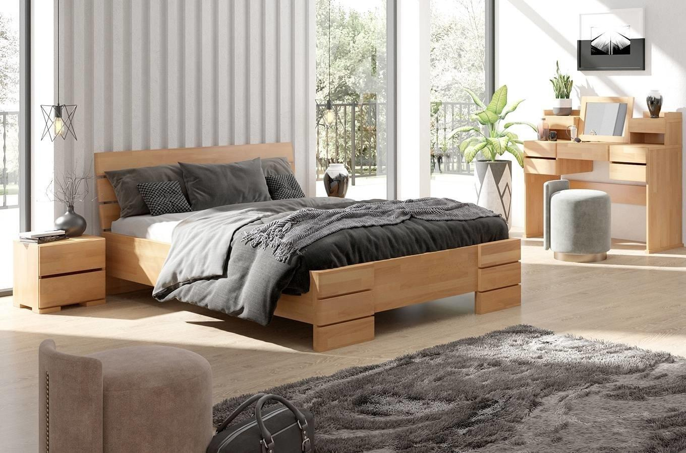 Drewniane, bukowe łóżko do sypialni Visby SANDEMO High&BC&Long to ceniony i stylowy mebel, który odmieni każdą sypialnię, a ponadto zapewni wygodny i doskonały wypoczynek. Stabilność i solidne wykonanie dodatkowo podkreślają jego atuty. Dzięki podwyższonej wysokości – tym samym wyższemu ułożeniu materaca niż w standardowych łóżkach (prawie 50 cm) - łóżko SANDEMO High&BC&Long to mebel, który zdecydowanie ułatwi poranne wstawanie. Zwiększona wysokość jest również niezastąpionym sprzymierzeńcem w trosce o czystość - w strefę snu nie dostają się roztocza i zanieczyszczenia w takiej ilości, jak w przypadku niższych mebli. To jeszcze nie wszystko - dłuższa o 20 cm niż standardowa wersja sprawia, że wysokie osoby zyskały możliwość kupna mebla dopasowanego do ich wzrostu.