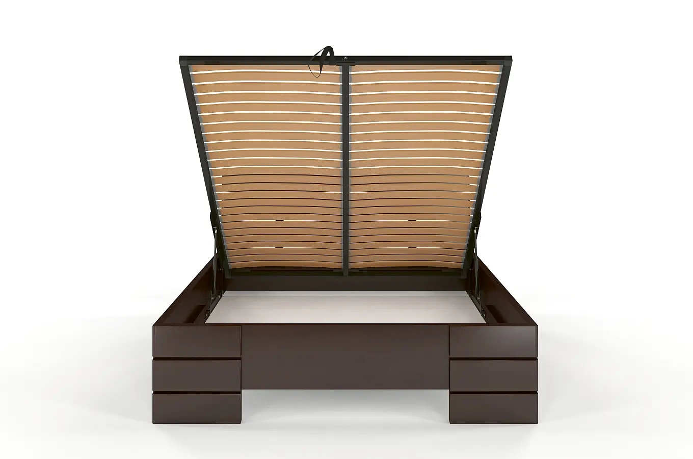 Łóżko drewniane bukowe Visby SANDEMO High BC Long (Skrzynia na pościel) / 140x220 cm, kolor palisander
