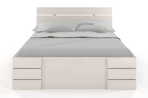 • Łóżko drewniane sosnowe Visby Sandemo High Drawers (z szufladami) / 200x200 cm, kolor palisander