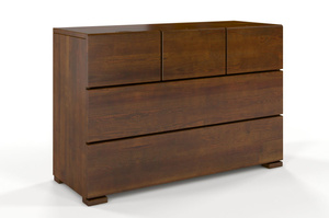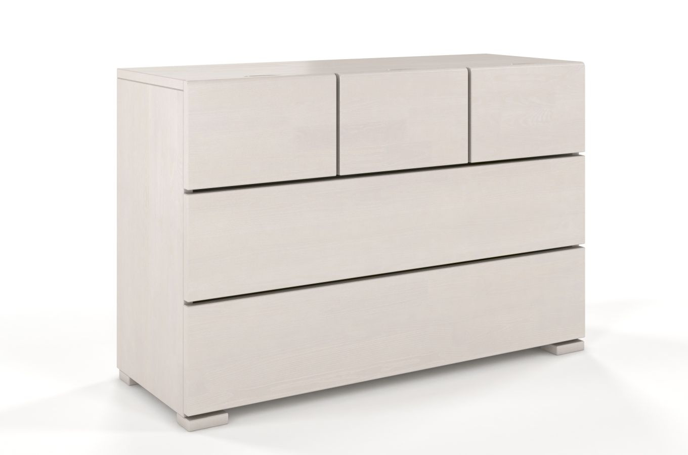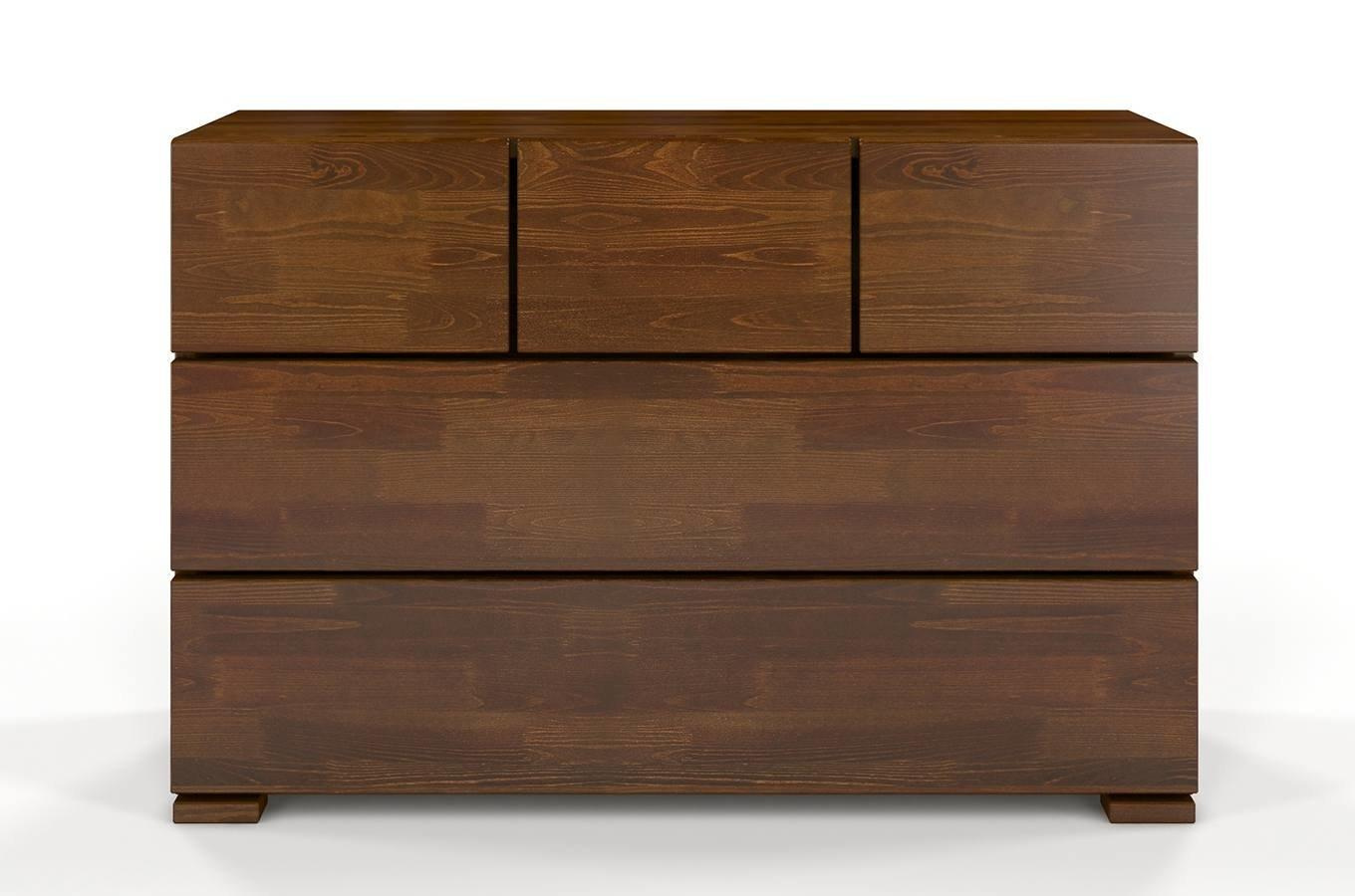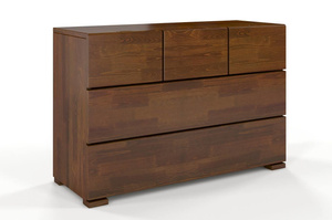 Nowoczesna komoda z kolekcji Hessler. Solidna konstrukcja i pięć szuflad, które zapewnią wystarczającą ilość miejsca, by posegregować rzeczy, drobiazgi. Współczesna stylistyka oparta na minimalizmie dodaje tej komodzie uroku i z pewnością znajdzie ona zastosowanie w niejednej sypialni czy pokoju.