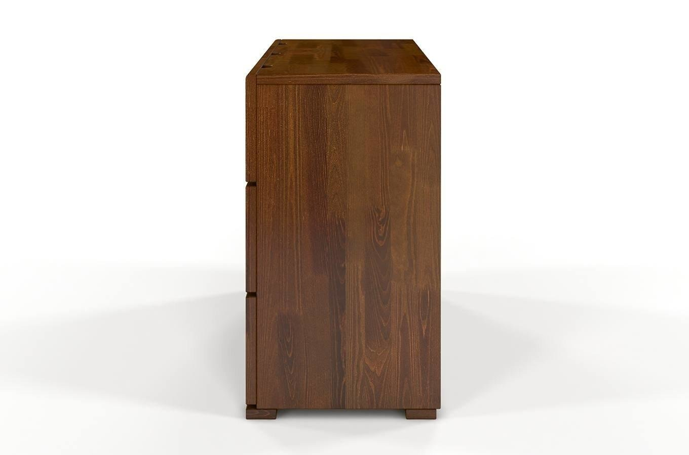 - Na "plecach" komody oraz na dnach szuflad znajduje się płyta HDF (standardowa płyta wykorzystywana do wykonywania dna szuflad w meblach - wykorzystywana jest ona także do produkcji paneli podłogowych)