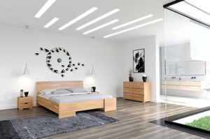 Drewniane, bukowe łóżko do sypialni Visby HESSLER High&BC to ceniony i stylowy mebel, który odmieni każdą sypialnię, a ponadto zapewni wygodny i doskonały wypoczynek. Stabilność i solidne wykonanie dodatkowo podkreślają jego atuty. Dzięki podwyższonej wysokości – tym samym wyższemu ułożeniu materaca niż w standardowych łóżkach (prawie 50 cm) - łóżko HESSLER High&BC jest meblem, z którego wstawania jest zdecydowanie łatwiejsze. Zwiększona wysokość jest również niezastąpionym sprzymierzeńcem w trosce o czystość - w strefę snu nie dostają się roztocza i zanieczyszczenia w takiej ilości, jak w przypadku niższych mebli.