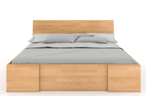 Drewniane, bukowe łóżko do sypialni Visby HESSLER HIGH DRAWERS to ceniony i stylowy mebel, który odmieni każdą sypialnię, a ponadto zapewni wygodny i doskonały wypoczynek. Stabilność i solidne wykonanie dodatkowo podkreślają jego atuty. Elementem wyróżniającym to łóżko są znajdujące się po obu jego stronach pojemne szuflady. Zostały one tak wkomponowane w korpus, że ich fronty licują z bokami mebla.