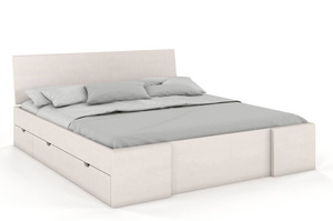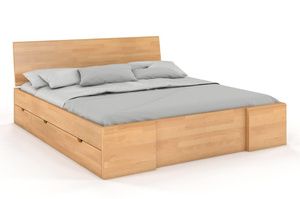 Drewniane, bukowe łóżko do sypialni Visby HESSLER HIGH DRAWERS to ceniony i stylowy mebel, który odmieni każdą sypialnię, a ponadto zapewni wygodny i doskonały wypoczynek. Stabilność i solidne wykonanie dodatkowo podkreślają jego atuty. Elementem wyróżniającym to łóżko są znajdujące się po obu jego stronach pojemne szuflady. Zostały one tak wkomponowane w korpus, że ich fronty licują z bokami mebla.