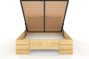 • Tapicerowane łóżko drewniane - sosnowe Visby Gotland High BC (skrzynia na pościel)
