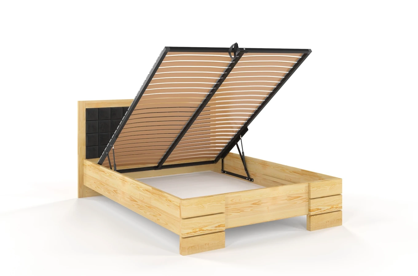 • Tapicerowane łóżko drewniane - sosnowe Visby Gotland High BC (skrzynia na pościel)