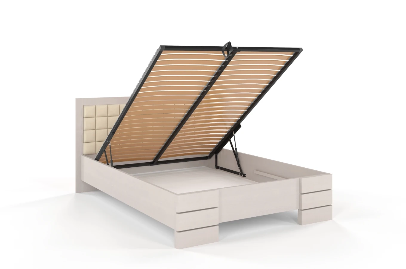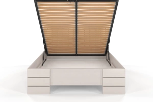 • Tapicerowane łóżko drewniane - sosnowe Visby Gotland High BC (skrzynia na pościel)