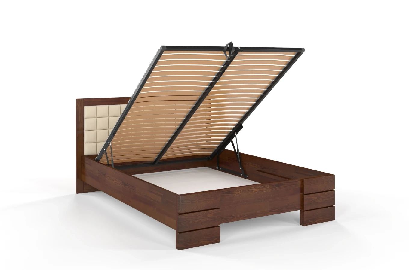 • Tapicerowane łóżko drewniane - sosnowe Visby Gotland High BC (skrzynia na pościel)