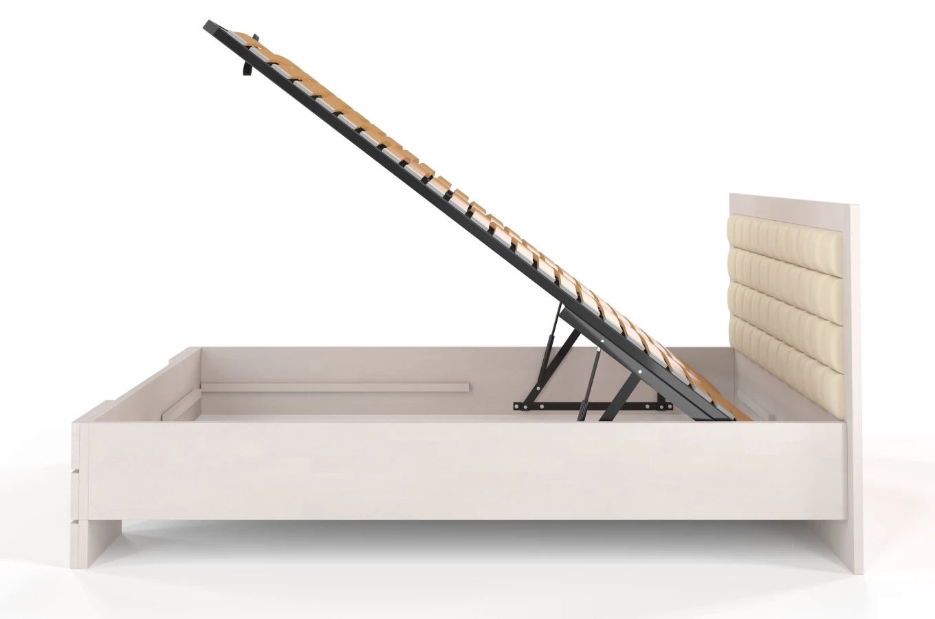 • Tapicerowane łóżko drewniane - bukowe Visby GOTLAND High BC Long (Skrzynia na pościel)