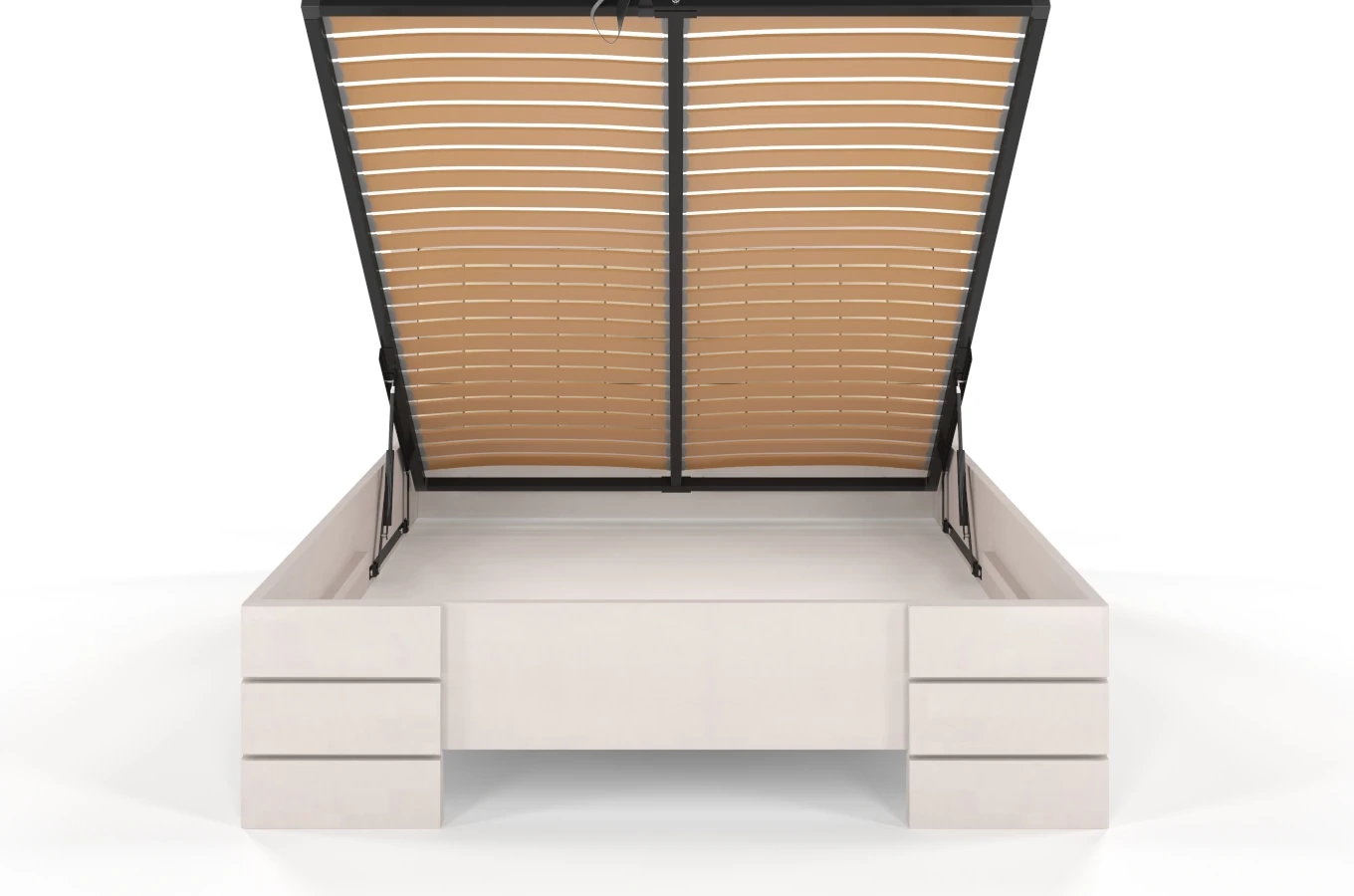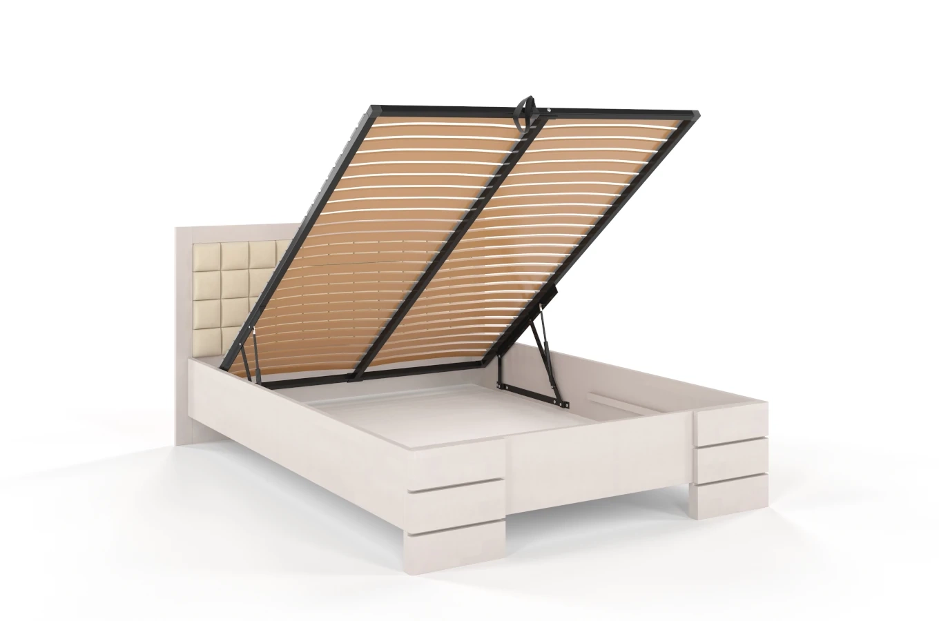 Tapicerowane łóżko drewniane - bukowe Visby GOTLAND High BC Long (Skrzynia na pościel)