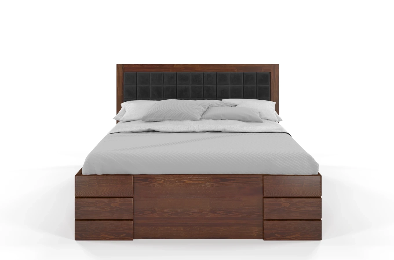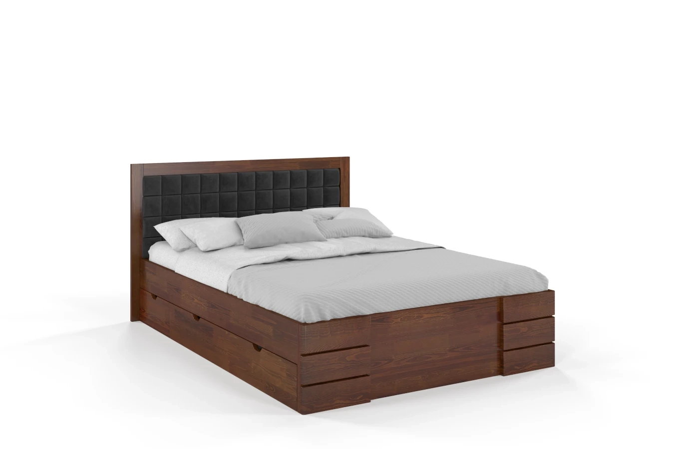 Tapicerowane łóżko drewniane - sosnowe Visby Gotland High Drawers (z szufladami)