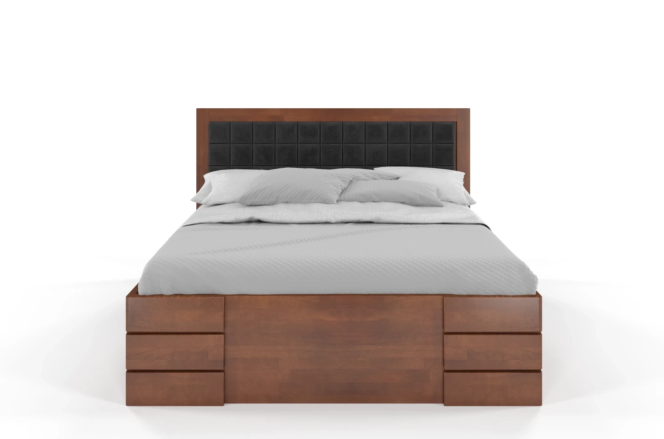 • Tapicerowane łóżko drewniane - bukowe Visby GOTLAND High Drawers