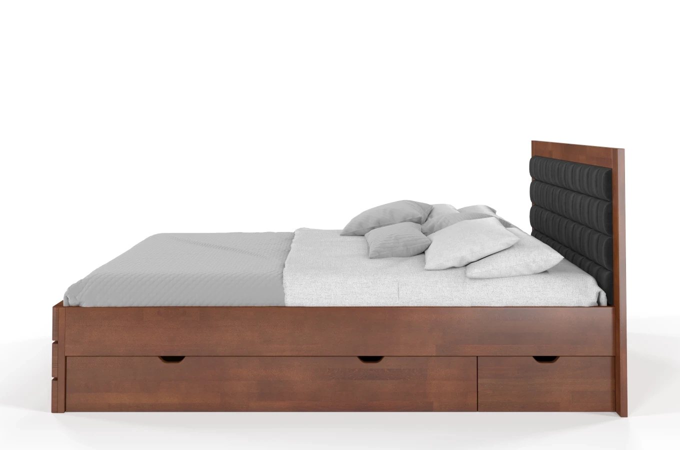 Tapicerowane łóżko drewniane - bukowe Visby GOTLAND High Drawers