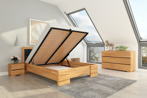 • Tapicerowane łóżko drewniane - bukowe Visby GOTLAND High BC Long (Skrzynia na pościel)