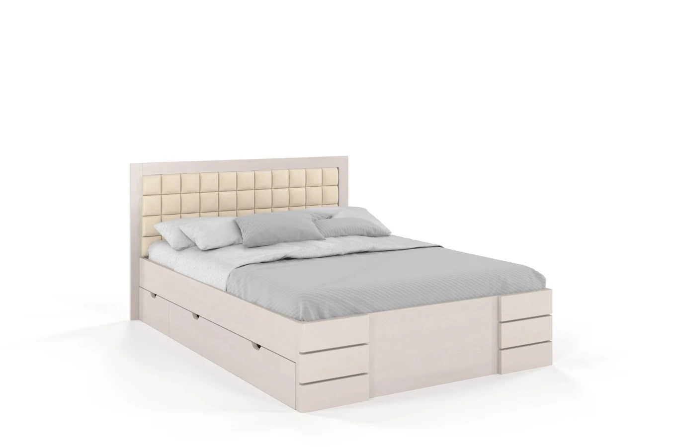• Tapicerowane łóżko drewniane - sosnowe Visby Gotland High Drawers (z szufladami)