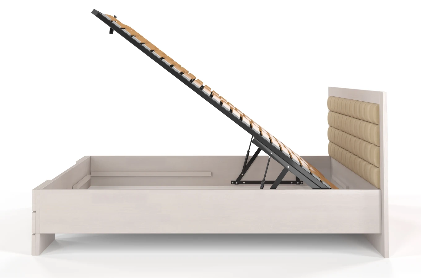 • Tapicerowane łóżko drewniane - sosnowe Visby Gotland High BC (skrzynia na pościel)