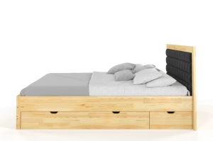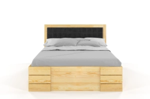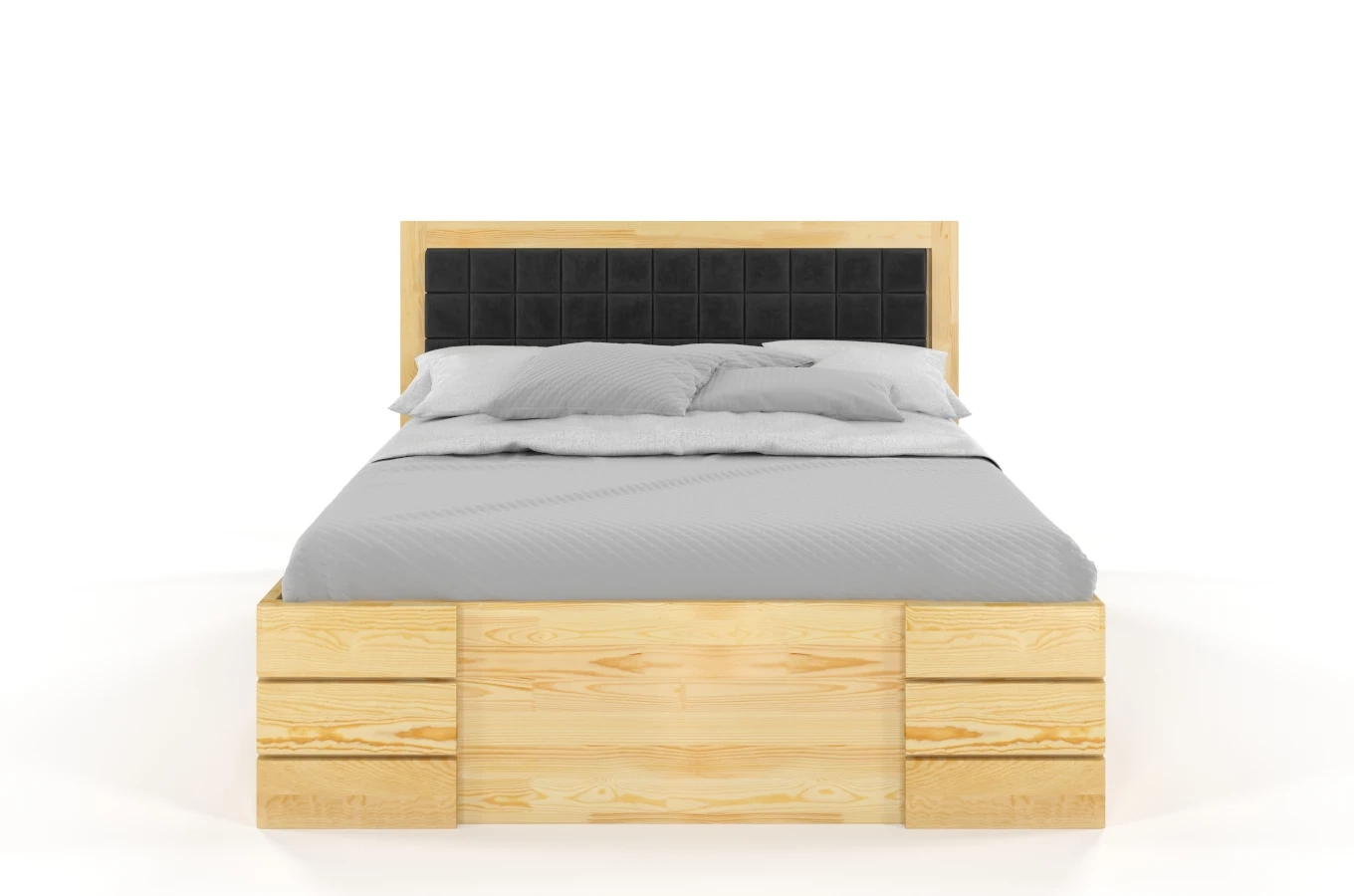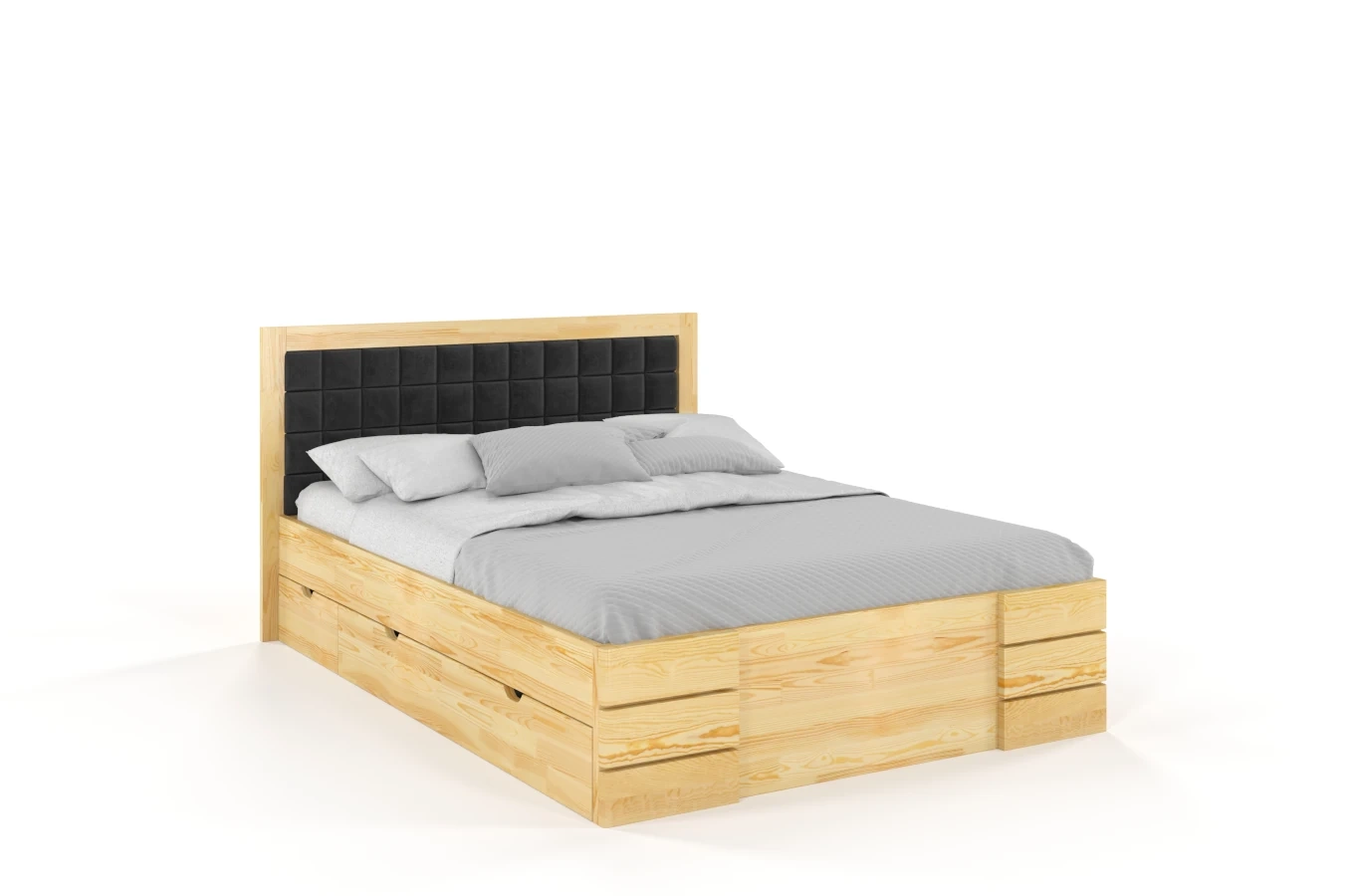 Tapicerowane łóżko drewniane - sosnowe Visby Gotland High Drawers (z szufladami)