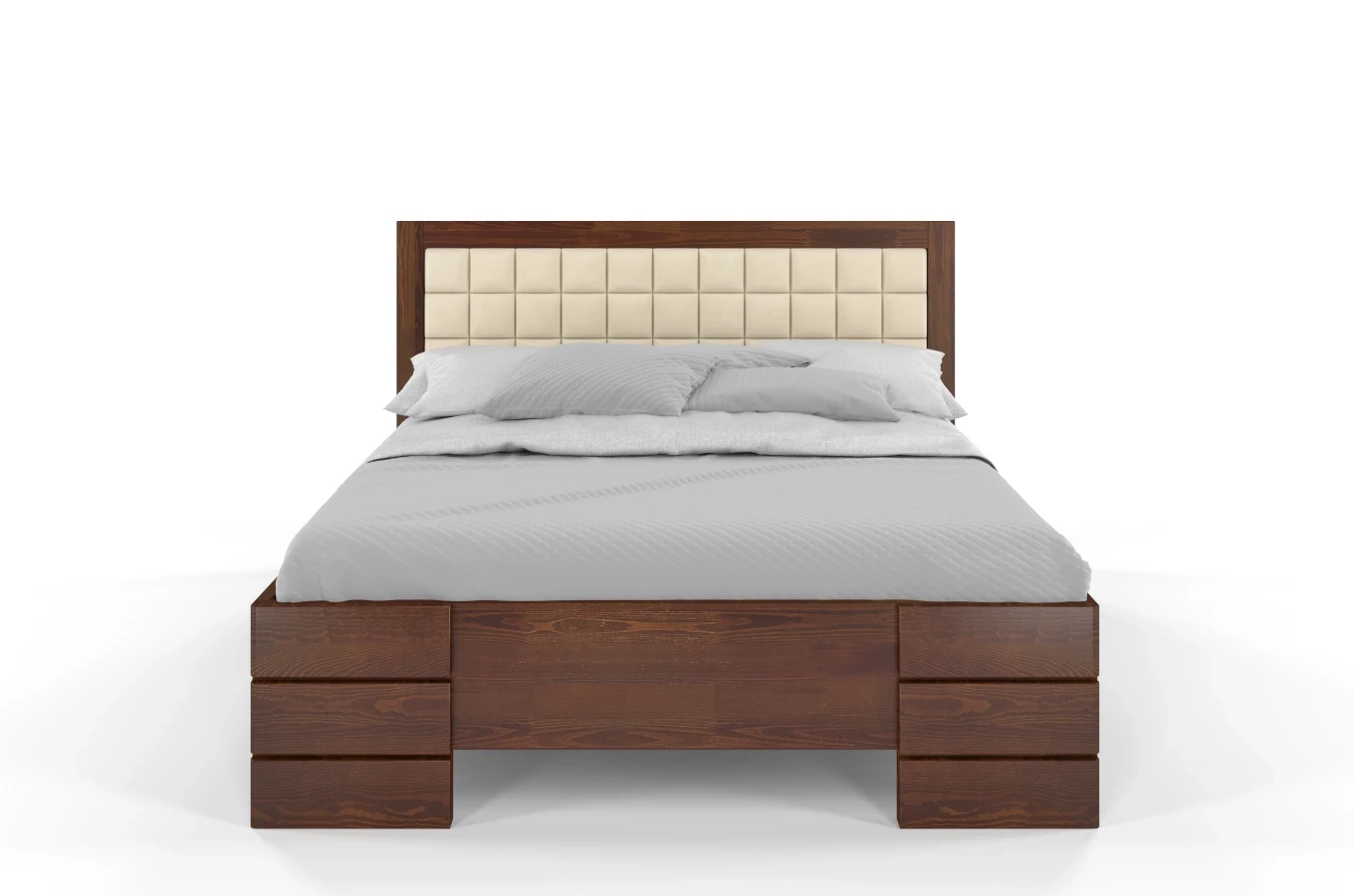 Tapicerowane łóżko drewniane - sosnowe Visby Gotland High&Long (długość + 20 cm)
