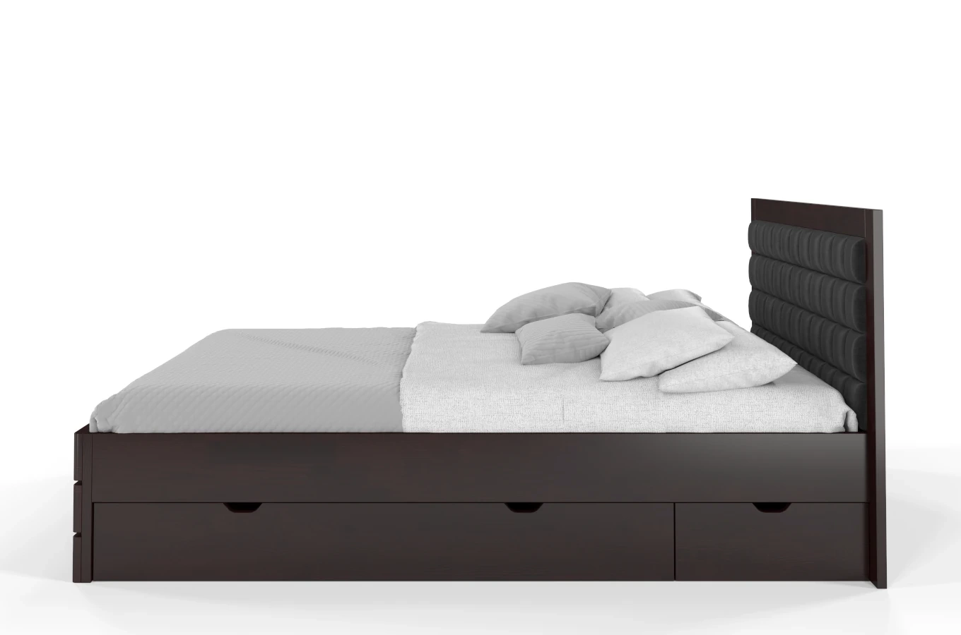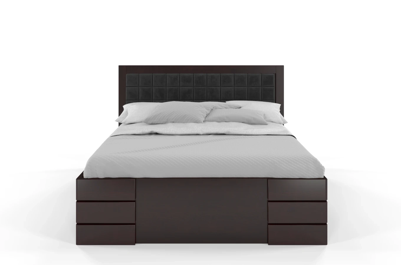 Tapicerowane łóżko drewniane - sosnowe Visby Gotland High Drawers (z szufladami)