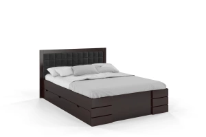 • Tapicerowane łóżko drewniane - sosnowe Visby Gotland High Drawers (z szufladami)
