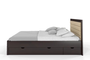 Tapicerowane łóżko drewniane - sosnowe Visby Gotland High Drawers (z szufladami)