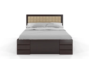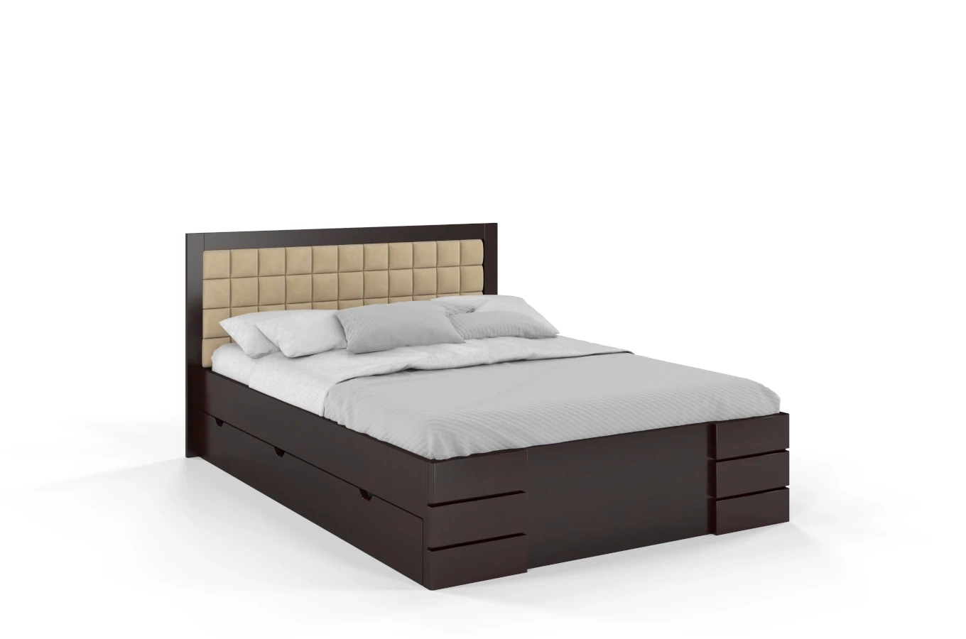 • Tapicerowane łóżko drewniane - sosnowe Visby Gotland High Drawers (z szufladami)