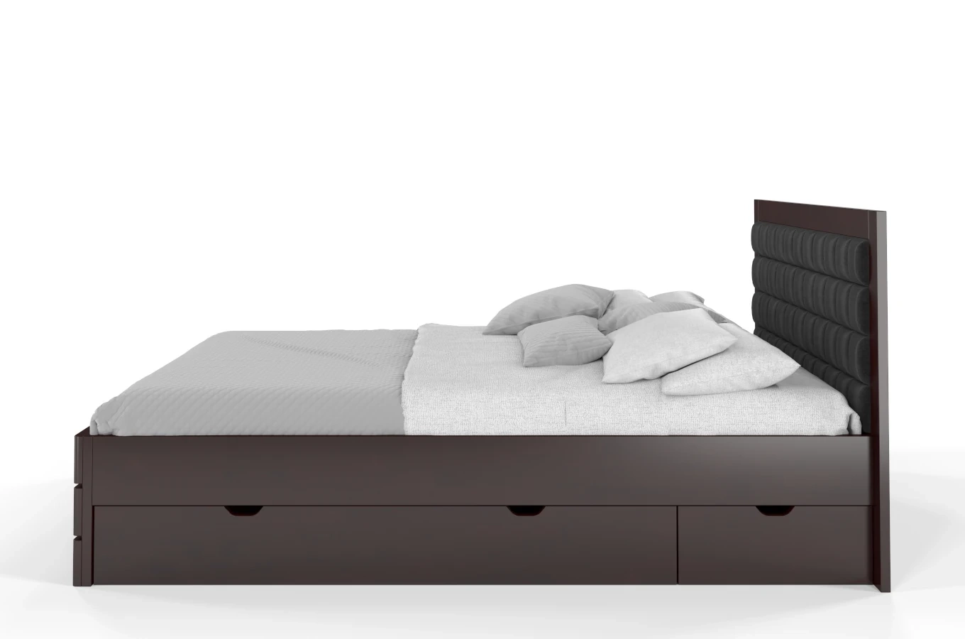 • Tapicerowane łóżko drewniane - bukowe Visby GOTLAND High Drawers