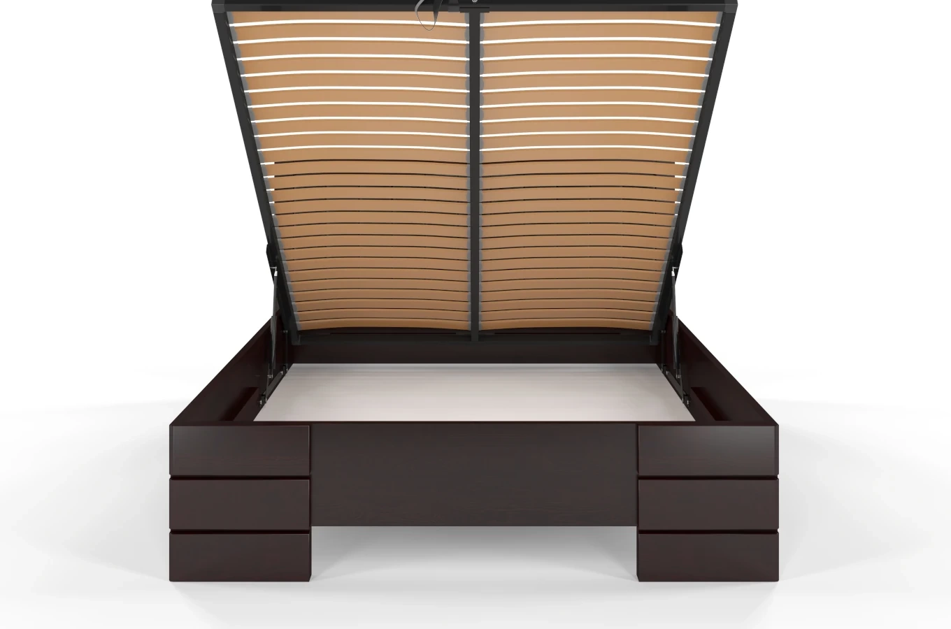 • Tapicerowane łóżko drewniane - sosnowe Visby Gotland High BC (skrzynia na pościel)