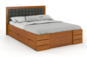 • Tapicerowane łóżko drewniane - sosnowe Visby Gotland High Drawers (z szufladami)
