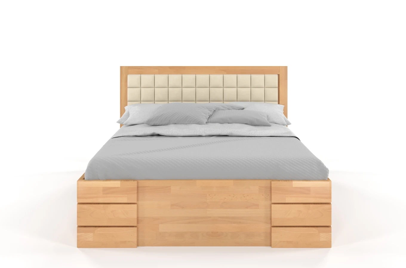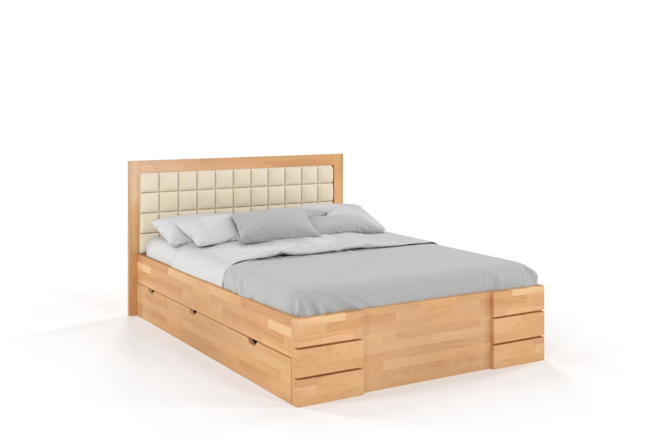 • Tapicerowane łóżko drewniane - bukowe Visby GOTLAND High Drawers