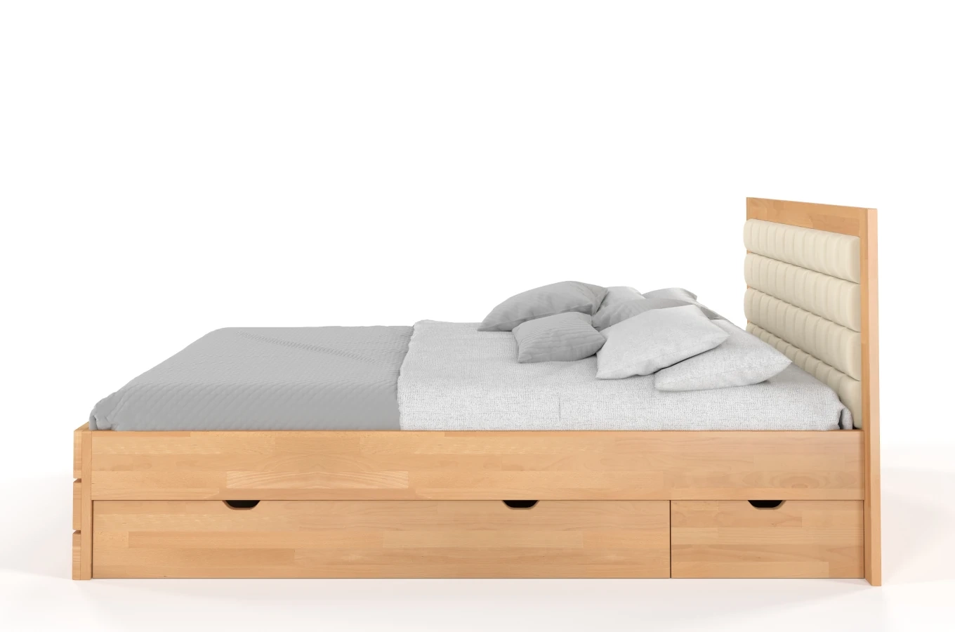 Tapicerowane łóżko drewniane - bukowe Visby GOTLAND High Drawers