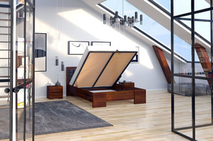 • Tapicerowane łóżko drewniane - sosnowe Visby Gotland High BC (skrzynia na pościel)