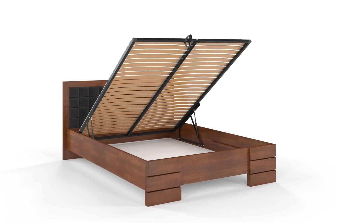 Do każdego łóżka z pojemnikiem na pościel dołączamy bezpłatnie zagęszczony stelaż z giętej sklejki brzozowej. Taki stelaż zapewnia najlepsze podparcie dla materaca oraz zapewnia jego długą żywotność.