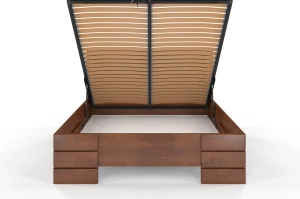 Do każdego łóżka z pojemnikiem na pościel dołączamy bezpłatnie zagęszczony stelaż z giętej sklejki brzozowej. Taki stelaż zapewnia najlepsze podparcie dla materaca oraz zapewnia jego długą żywotność.