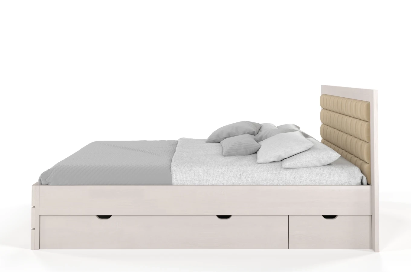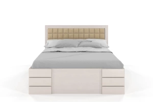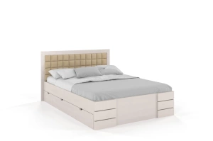 • Tapicerowane łóżko drewniane - sosnowe Visby Gotland High Drawers (z szufladami)