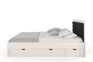 Tapicerowane łóżko drewniane - bukowe Visby GOTLAND High Drawers