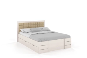 • Tapicerowane łóżko drewniane - bukowe Visby GOTLAND High Drawers