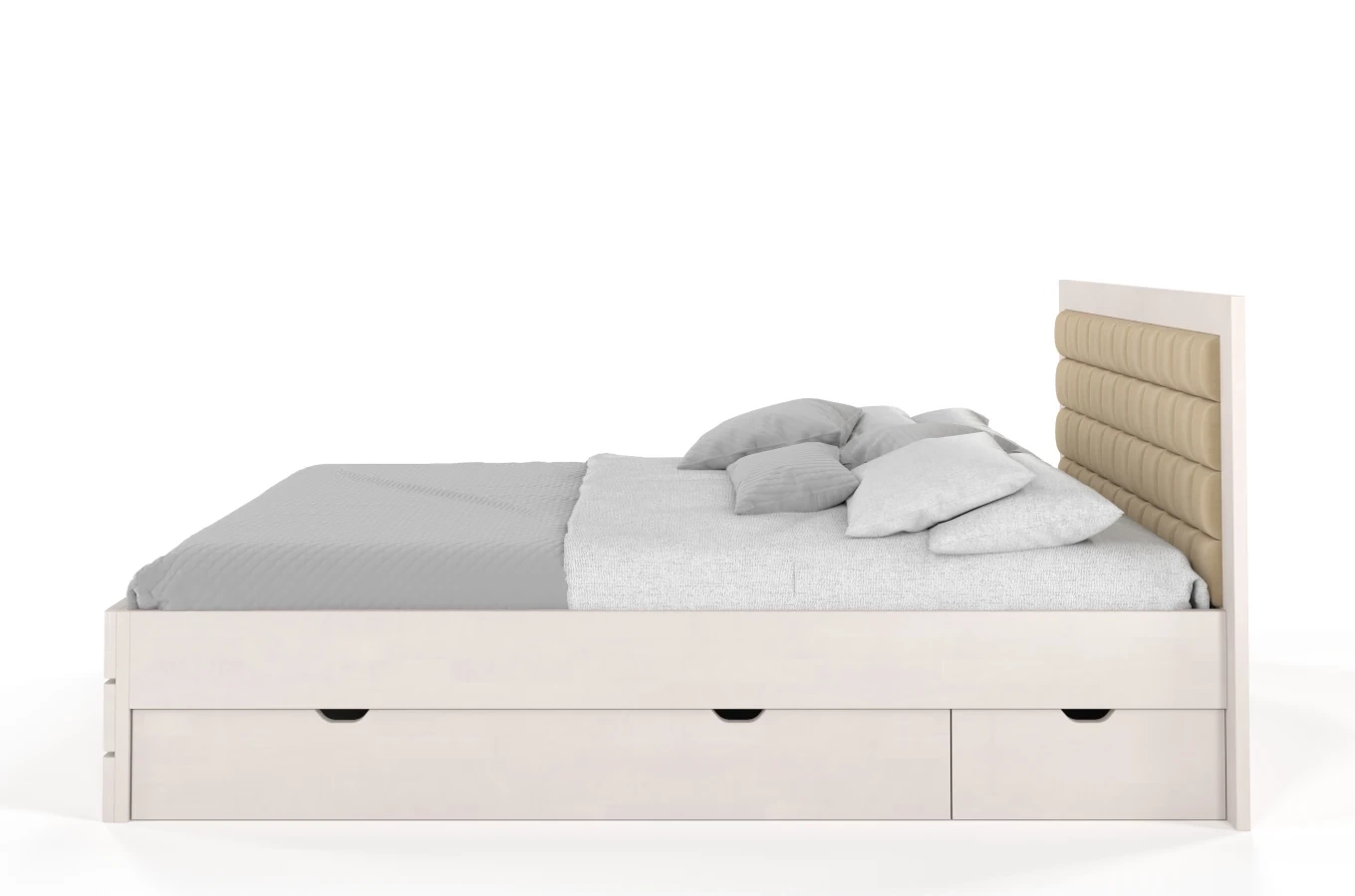 Tapicerowane łóżko drewniane - bukowe Visby GOTLAND High Drawers