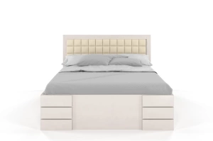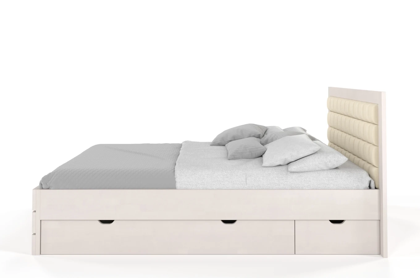 Tapicerowane łóżko drewniane - bukowe Visby GOTLAND High Drawers