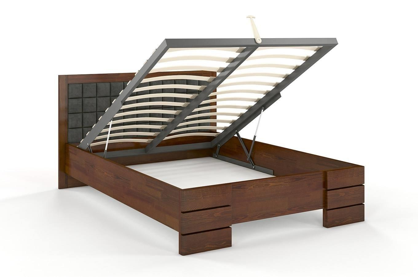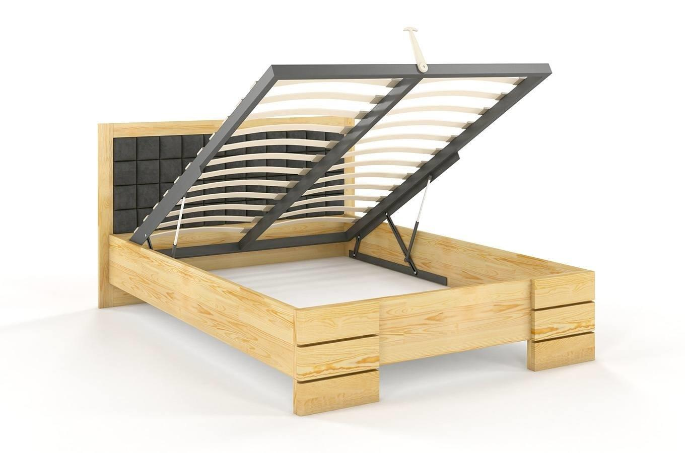 Tapicerowane łóżko drewniane - sosnowe Visby Gotland High BC (skrzynia na pościel)