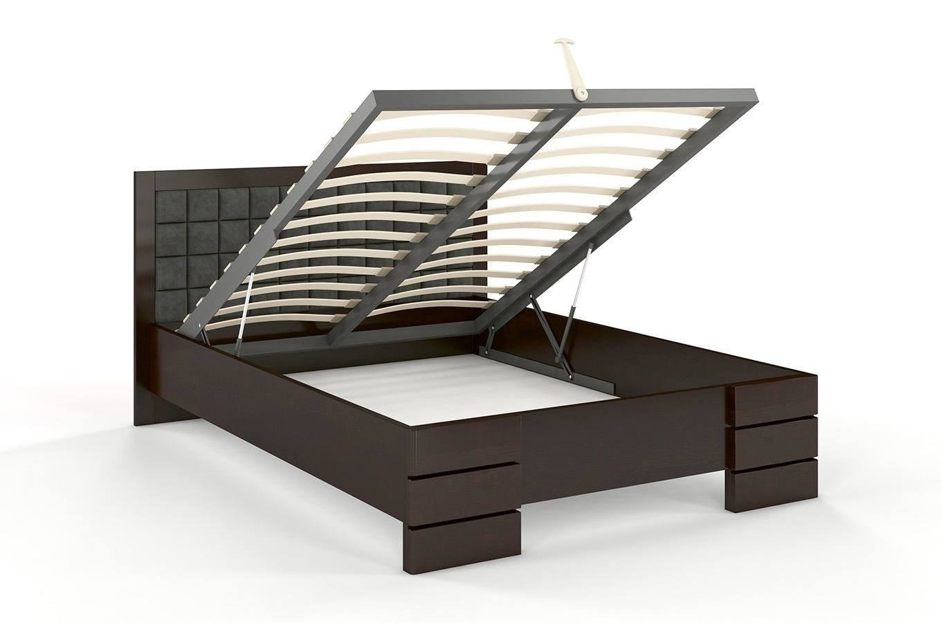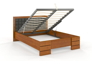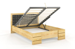 • Tapicerowane łóżko drewniane - sosnowe Visby Gotland High BC (skrzynia na pościel)