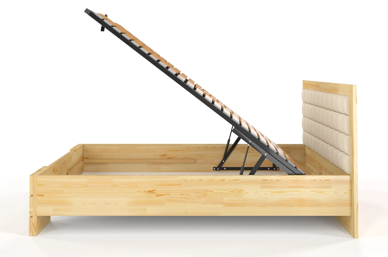 Tapicerowane łóżko drewniane - sosnowe Visby Gotland High BC (skrzynia na pościel)