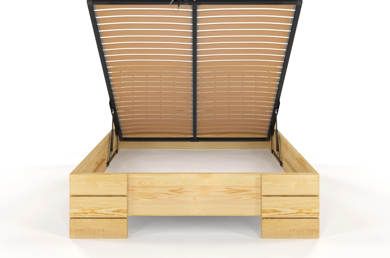• Tapicerowane łóżko drewniane - sosnowe Visby Gotland High BC (skrzynia na pościel)