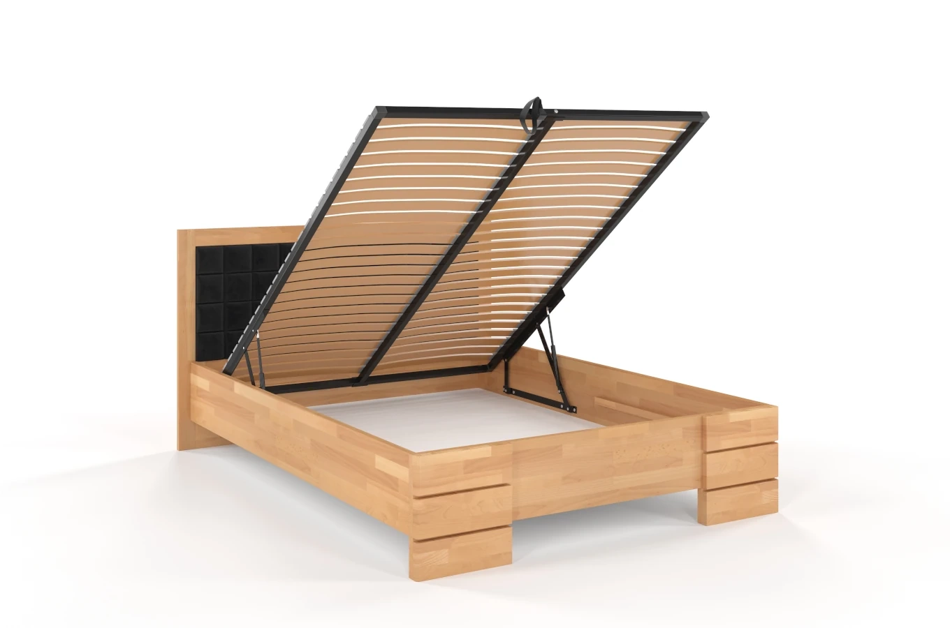 Tapicerowane łóżko drewniane - bukowe Visby Gotland High BC (skrzynia na pościel)