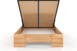 • Tapicerowane łóżko drewniane - bukowe Visby Gotland High BC (skrzynia na pościel)