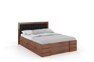 • Tapicerowane łóżko drewniane - bukowe Visby GOTLAND High Drawers