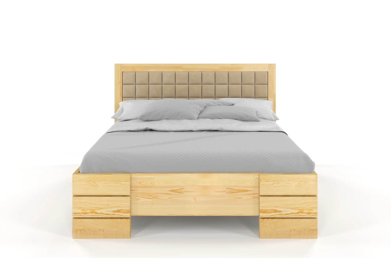 Tapicerowane łóżko drewniane - sosnowe Visby Gotland High