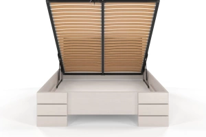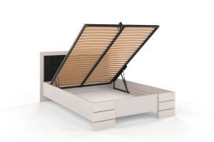 • Tapicerowane łóżko drewniane - sosnowe Visby Gotland High BC (skrzynia na pościel)